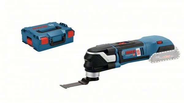 Akku-Multi-Cutter GOP 18V-28, Das Akku-Multifunktionswerkzeug GOP 18V-28 Professional ist der leistungsstarke Akku-Allrounder in der Bosch StarlockPlus-Klasse. Seine einzigartige Starlock-Schnittstelle mit einer optimierten dreidimensionalen Kraftschlussverbindung zwischen Maschine und Zubehör sorgt für eine größtmögliche Kraftübertragung und damit für einen schnelleren Arbeitsfortschritt. Das Multifunktionswerkzeug verfügt außerdem über ein LED-Licht zur Beleuchtung von Arbeitsbereichen und Schaffung optimaler Sichtverhältnisse auch bei Dunkelheit. Darüber hinaus ermöglicht die Snap-In-Funktion einen schnellen und einfachen Werkzeugwechsel. Dieses Elektrowerkzeug eignet sich für die Möbel- oder Bootsrenovierung sowie für die Rohr- und Nagelbearbeitung. Es kann für Holz, Plastik und Metall eingesetzt werden. Es ist kompatibel mit dem Starlock- und StarlockPlus-System. Ferner verfügt der GOP 18V-28 Professional über Funktionen wie konstante Drehzahl, Softgrip und Drehzahlvorwahl. 1 x StarlockPlus BIM Tauchsägeblatt PAIZ 32 APB, Curved-Tec, Wood + Metal (2 608 662 558); L-BOXX 136 (1 600 A01 2G0)