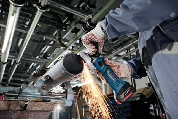 Akku-Winkelschleifer GWS 18-125 V-LI. Der kompakte GWS 18-125 V-LI Professional ist der kleinste und leichteste kleine Akku-Winkelschleifer in der 18-Volt-Klasse von Bosch. Dank des leistungsstarken 4-poligen Motors entspricht seine Leistung der eines kabelgebundenen 800-Watt-Schleifers. Mit seinem geringen Gewicht von nur 2,3 kg und seiner kompakte Gehäuseform eignet sich der Schleifer optimal für Arbeiten über Kopf und an engen Stellen. Seine volle Kompatibilität mit allen Bosch Professional 18-Volt-Akkus und -Ladegeräten eröffnet zahlreiche Optionen. Dieses Elektrowerkzeug wurde zum Trennen und Schleifen von Metall, Fliesen und Mauerwerk konzipiert. Es ist mit der Staubabsaugung GDE 125 EA-S Professional und mit allen Bosch Professional 18-Volt-Akkus und -Ladegeräten kompatibel (Professional 18V System). Der GWS 18-125 V-LI Professional verfügt außerdem über eine Schutzhaube und einen Wiederanlaufschutz. Im Lieferumfang enthalten: Zusatzhandgriff (1 602 025 024), Karton, Schutzhaube (1 619 P06 548)