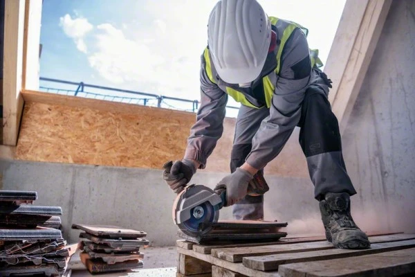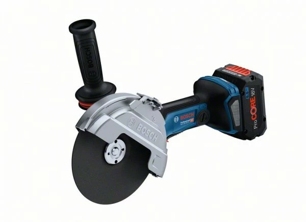 Akku-Winkelschleifer GWS 18V-180 PC, Mit seiner 180-mm-Schleifscheibe und seinem kleinen Getriebekopf erreicht der GWS 18V-180 PC dieselbe Schnitttiefe wie ein großer 230-mm-Winkelschleifer, ist aber bis zu 35 % leichter. Seine BITURBO Brushless-Technologie liefert genug Power für schnelles Schneiden in zahlreichen Materialien. Eines seiner Highlights ist der hohe Anwenderschutz: Beim Loslassen des PROtection-Schalters schaltet der Winkelschleifer sofort ab und die KickBack Control verhindert einen unerwarteten Rückschlag, während das intelligente Bremssystem die Bremszeit deutlich verkürzt. Sein Bluetooth Connectivity-Modul bietet zusätzliche Werkzeuginformationen und Serviceleistungen direkt über die Toolbox App. Der GWS 18V-180 PC Professional schneidet alle Arten von Metall, Beton, Ziegeln und Fliesen. Der Winkelschleifer ist kompatibel mit allen Bosch Professional 18V-Akkus und -Ladegeräten (Professional 18V System); für maximale Leistung ProCORE18V ≥ 5,5 Ah verwenden. Zu den Merkmalen des Winkelschleifers gehören Wiederanlaufschutz, Sanftanlauf und ein Seitengriff mit Vibration Control. Karton; Schutzhaube (1 600 A02 84A); Anklippbare Trennschutzhaube aus Metall (1 619 P16 650); Vibration Control-Zusatzhandgriff (1 602 025 0A0); 2 x Trennscheibe, Expert for Inox Rapido, 180 x 22,23 mm (2 608 603 406); 1 x Diamantscheibe, Standard for Universal, 180 x 22,23 mm (2 608 615 063)