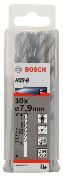 Bosch Metallbohrer HSS-G, DIN 338, 7,9 X 75 X 117 Mm, 10er-Pack 2608585507