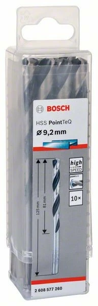 Bosch Metallspiralbohrer HSS PointTeQ, DIN 338, 9,2 Mm, 10er-Pack 2608577260