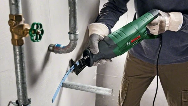 Säbelsäge PSA 900 E. Schnelles, kraftvolles Sägen bei Abbrucharbeiten, 900-W-Motor für kraftvolle Grobschnitte. Schnitttiefe von bis zu 200 mm für dicke Werkstücke. Einfache Anpassung der Drehzahl auf Materialien mit Bosch Electronic für bessere Ergebnisse. Für eine Vielzahl von Materialien wie Holz, Metall und Gipskarton geeignet. SDS ermöglicht einen schnellen und einfachen werkzeuglosen Sägeblattwechsel für effizientes Arbeiten. Im Lieferumfang enthalten: 1 Sägeblatt für Holz S 2345 X (Nachkauf im 2er-Set (2 608 654 403) oder 5er-Set (2 608 654 404)), 1 Sägeblatt für Holz und Metall S 3456 XF (Nachkauf im 2er-Set (2 608 654 405) oder 5er-Set (2 608 654 406)), Karton