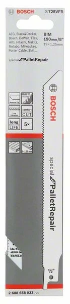 Bosch Säbelsägeblatt S 725 VFR, Special for Pallet Repair, 5er-Pack 2608658033
