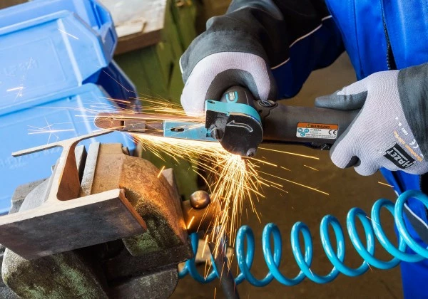 - Stufenlose Drehzahlregulierung mittels Drehregler auf Griffrücken